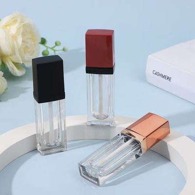 3أنبوب زجاج الشفاه بلاستيكي مربع 5 مل مع فرشاة، يمكن تخصيص اللون.